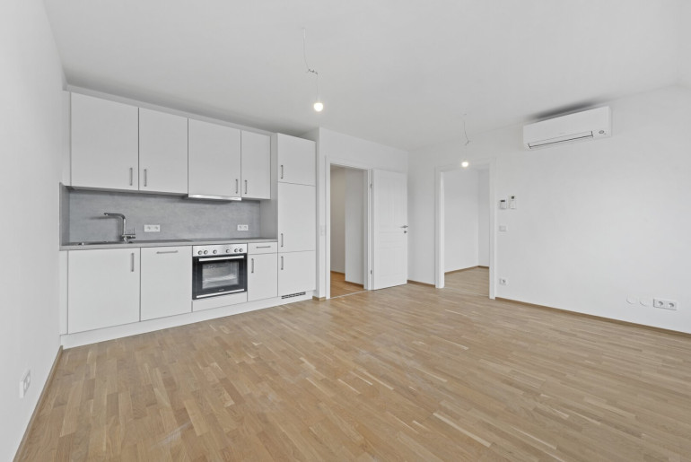 Im Inneren erwarten Sie schlüsselfertige Wohnungen, die mit attraktivem Eichenparkett, stilvoll verfliesten Bädern und vollausgestatteten Küchen ausgestattet sind. Die Dachgeschosswohnungen verfügen zusätzlich über Klimaanlagen der Premium-Marke Daikin, die auch an heißen Sommertagen für ein behagliches Wohnklima sorgen. Großzügige, jeweils den Wohnungen zugeordnete, Kellerabteile runden das Angebot ab.