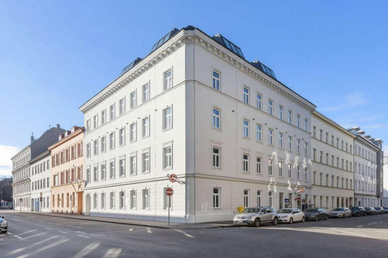 Das Gebäude wurde einer umfassenden Generalsanierung unterzogen: zwei neue Dachgeschosse, ein Lift, erneuerte Fenster, eine sanierte Fassade und ausgewählte Materialien formen ein harmonisches Gesamtbild, das den Charme des Altbaus respektvoll in die Gegenwart holt.