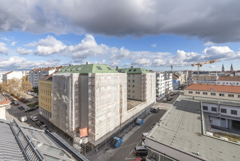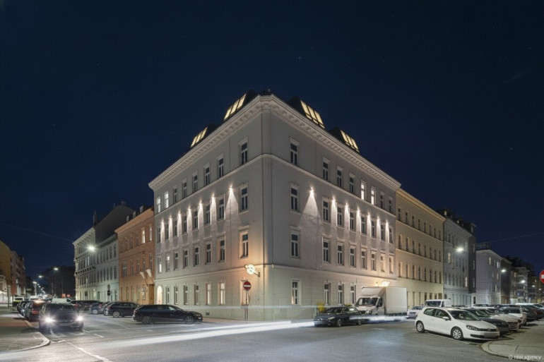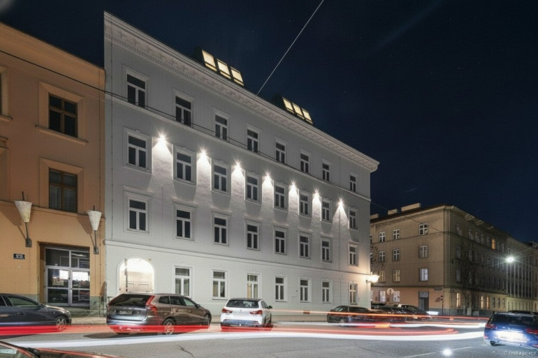 Das Gebäude wurde einer umfassenden Generalsanierung unterzogen: zwei neue Dachgeschosse, ein Lift, erneuerte Fenster, eine sanierte Fassade und ausgewählte Materialien formen ein harmonisches Gesamtbild, das den Charme des Altbaus respektvoll in die Gegenwart holt.