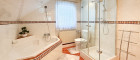 Fliesen, Parkett, Gas, Zentralheizung, Wohnküche / offene Küche, Ostbalkon, Badewanne, Dusche, Kabel/Satelliten-TV, Garage, Swimmingpool