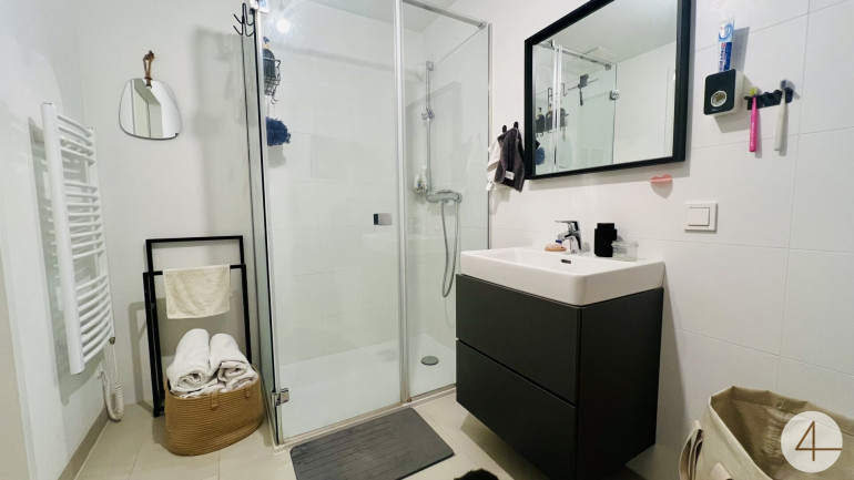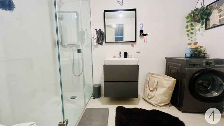 - Badezimmer mit Dusche und Waschmaschinenanschluss