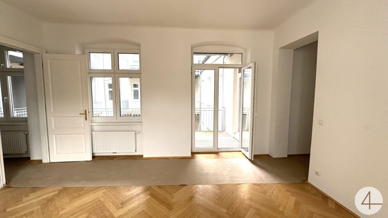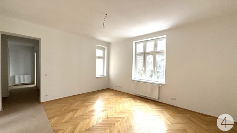 Im Zuge der Sanierung wurden neue Echtholz-Böden und neue Fenster eingebaut, wodurch ein modernes Wohngefühl und gute Energieeffizienz entstehen.