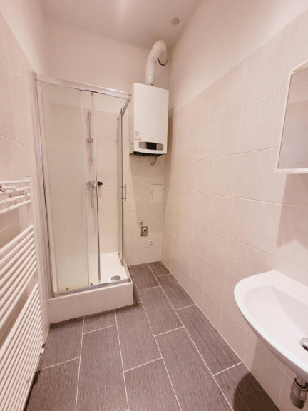 Man betritt die Wohnung über den Vorraum. Linkerhand befindet sich die Küche, ausgestattet mit einer Einbauküche und einem Fenster in den Innenhof. Daneben befindet sich das Badezimmer, welches mit einer Dusche, einem Waschbecken und einem Waschmaschinenanschluss ausgestattet ist. Im Vorraum geradeaus gelangt man ins Wohnzimmer und weiter ins Schlafzimmer. Das Schlafzimmer kann nur über das Wohnzimmer betreten werden. Das WC ist separat. Alle Fenster schauen in den ruhigen Innenhof.