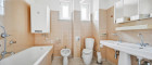 Das Badezimmer ist komfortabel ausgestattet mit Badewanne, Bidet, WC, Doppelwaschbecken inklusive Spiegelschrank und verfügt über zwei Fenster, die für natürliche Belichtung und Belüftung sorgen.