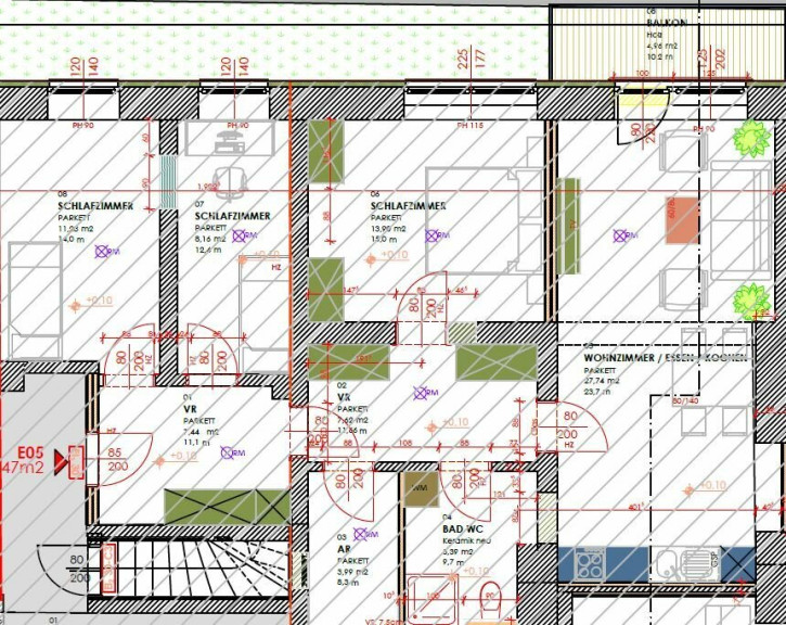 Die Immobilie befindet sich im EG eines fünfstöckigen Gebäudes und hat ca. 85,47 m². Sie betreten die Wohnung und gelangen in einen ca. 7,44 m² großen Vorraum. Die ersten beiden Türen auf der linken Seite führen Sie zu den ersten zwei Schlafzimmern der wunderbaren Wohnung. Diese haben jeweils ca. 11,23 m² und 8,16 m². Wenn Sie dem Vorraum geradeaus folgen gelangen Sie durch eine Tür in einen weiteren Vorraum, welcher zu den übrigen Räumen der Immobilie führt. Geradeaus befindet sich die Wohnküche, welche eine Größe von ca. 27,74 m² aufweist. Diese ist das Herz der Wohnung und lädt zum Entspannen und Wohlfühlen ein. Außerdem ist der ca. 4,96 m² große Balkon von hier aus erreichbar. Das dritte und größte Schlafzimmer befindet sich vom Vorraum aus auf der linken Seite. Dieses hat ca. 13,95 m². Gegenüber befinden sich zwei weitere Türen, welche einerseits zu dem Abstellraum und andererseits zu dem Badezimmer führen. Im Badezimmer befindet sich eine Dusche, eine Toilette und ein Waschmaschinenanschluss.