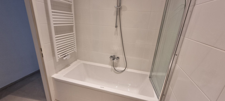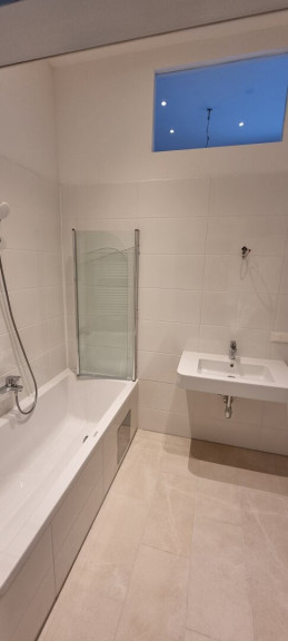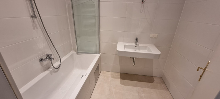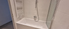 Badezimmer mit Badewanne, Handwaschbecken, WM-Anschluss - WC.