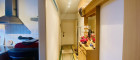 Der Wohn- und Schlafbereich ist offen und funktional gestaltet und bietet dank eines integrierten, verstaubaren Doppelbettes maximale Flexibilität für Wohnen und Schlafen. Große 3-fach verglaste Fenster sorgen hier für eine angenehme, natürliche Belichtung und ein freundliches Wohngefühl.