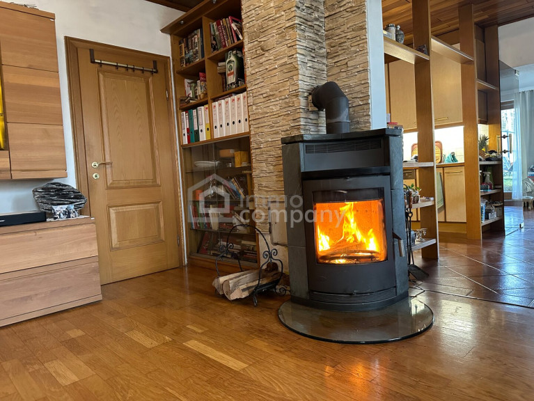 Parkettboden, Öl, Kamin, Zentralheizung, Wohnküche / offene Küche, Südbalkon, Bad mit Fenster, Badewanne, Kabel/Satelliten-TV, Garage