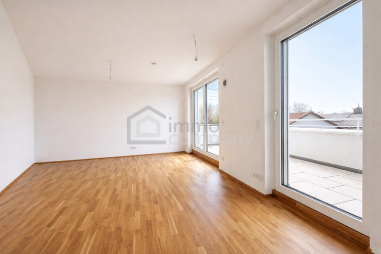 Die Wohnung verfügt über eine Wohnfläche von 52,16 m² und überzeugt durch eine durchdachte Raumaufteilung. Die großzügige Wohnküche bildet das Herzstück der Wohnung und bietet direkten Zugang zur Terrasse. Große Fensterflächen sorgen für eine angenehme natürliche Belichtung und unterstreichen den modernen Wohnkomfort. Ein zusätzlicher kleiner Balkon ergänzt das Außenangebot.