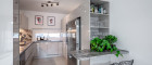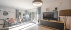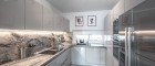 Die offen angebundene Einbauküche ist mit hochwertigen Geräten, teilweise in Edelstahl, ausgestattet und fügt sich elegant in den Wohnbereich ein. Ein kleiner Barbereich bietet Platz für den ersten Kaffee am Morgen oder ein schnelles Frühstück zwischendurch – praktisch, kommunikativ und stilvoll zugleich.