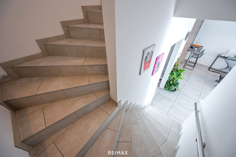Das Haus wurde in hochwertiger Ziegelmassivbauweise errichtet und mit einem modernen Flachdach ausgeführt – zeitlos in der Architektur, langlebig in der Substanz. Unterschiedliche, sorgfältig gewählte Bodenbeläge aus Parkett, Fliesen und Stein unterstreichen den wohnlichen wie auch funktionalen Charakter (Wohnräume, Bäder, Keller etc.) der Räume.