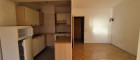 Schlaf-Wohn-Essbereich mit möblierter Küche