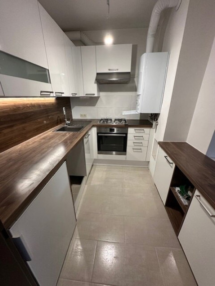 Die Wohnung verfügt über eine komplett ausgestattete Einbauküche, ein Badezimmer mit Dusche, ein separates WC, Parkettböden sowie eine Gas-Etagenheizung. Ein Abstellraum und ein großzügiges Kellerabteil mit ca. 16 m² bieten zusätzlichen Stauraum.