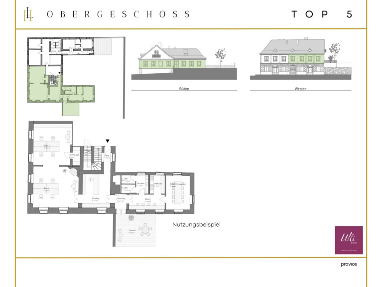 BARRIEREFREIHEIT im EG nach Absprache und für das OG sind 2 Zugangsmöglichkeiten vorgesehen - 1mal über die Treppe im Gebäude und eine zweite barrierefreie Möglichkeit über die Parkplätze an der Hinterseite des Gebäudes.