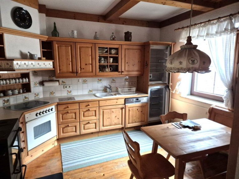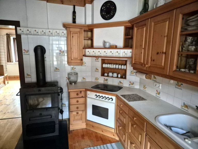 Das Haus wird beheizt mit einem großen Kachelofen im Wohnzimmer und einem Holzofen in der Küche - die weiteren Räume werden elektrisch beheizt.