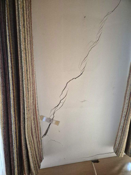 Allerdings hat ein länger zurückliegendes Hochwasserereignis Spuren am Gebäude hinterlassen - es gibt mehrere Setzungsrisse, die lt. Begutachtung durch einen Baumeister schon einer fachgerechten Reparatur bedürfen.