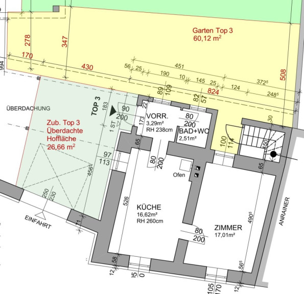 Zugang: Über Innenhof oder direkt über das Garagentor.
