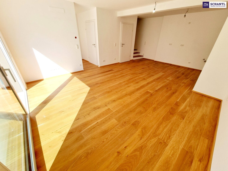 Hausfeeling pur! Ihr neues Townhouse wird Sie begeistern und teilt sich auf der 1.Ebene in einen geräumigen Vorraum mit viel Platz für eine Garderobe und Stauraum, ein separates Gäste-WC, einen praktischen Abstellraum sowie ein lichtdurchflutetes und großes Wohn-Esszimmer mit Zugang zur Terrasse bzw. dem charmanten Garten.