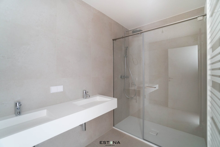 - Badezimmer mit Walk-Inn Dusche und Doppelwaschbecken