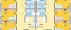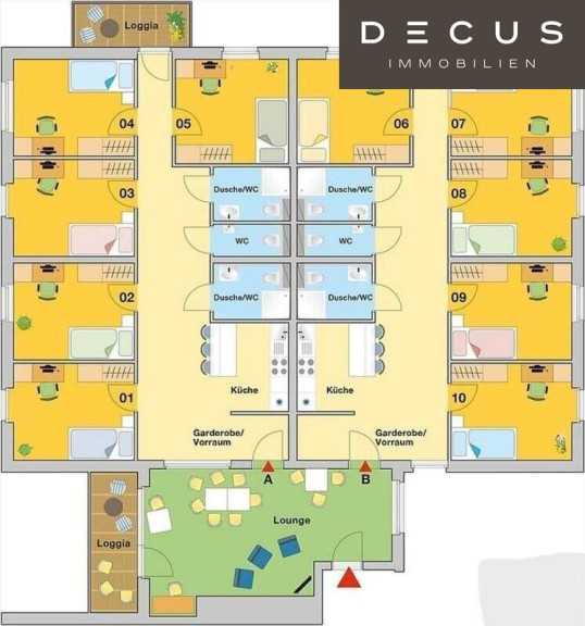 Jede Wohneinheit umfasst 5 Zimmer, insgesamt befinden sich 10 Zimmer pro Etage.