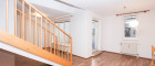 Die Treppe in den zweiten Stock teilt den Wohnbereich auch optisch in Wohnbereich, Küche und Essbereich auf.