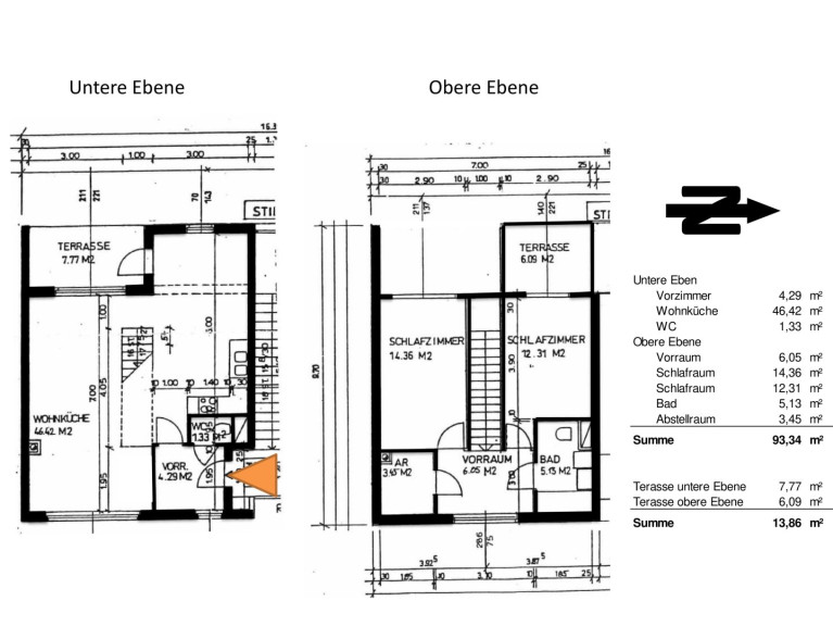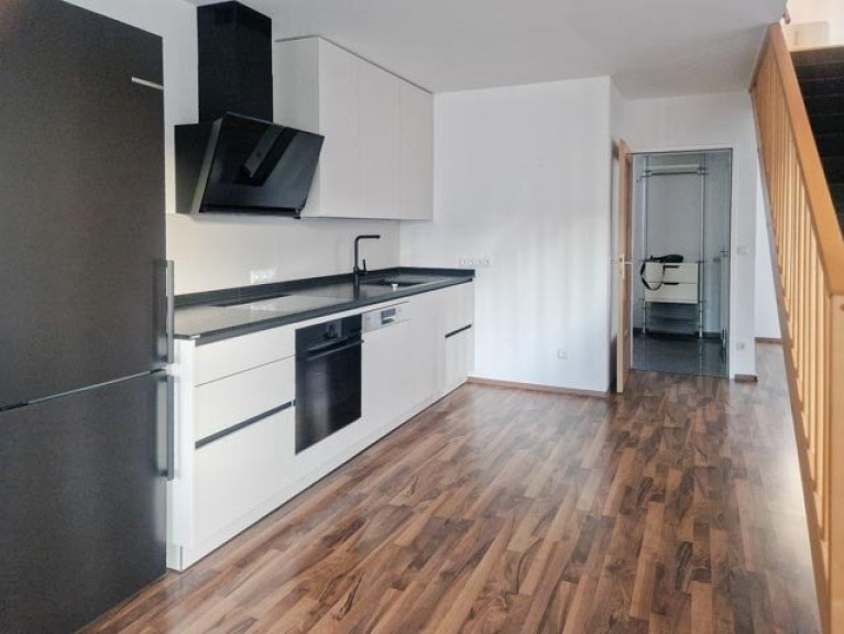 Auf der unteren Ebene befindet sich der Vorraum, das WC und der geräumige Wohnraum mit offener Küche (wurde neu eingebaut).