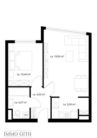1 Wohnküche mit Platz für Wohn- und Essbereich