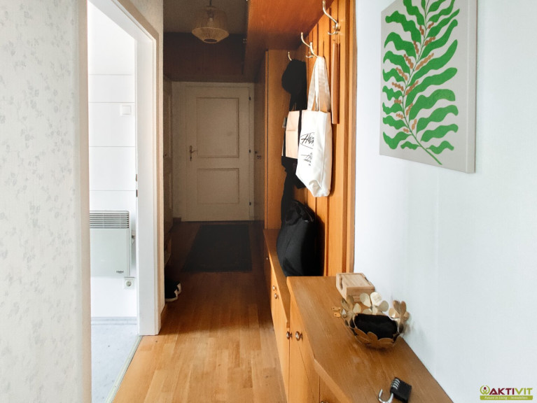 Man betritt die Wohnung über einen Vorraum. Von hier aus sind das separate WC, die Küche sowie das Wohnzimmer direkt erreichbar .