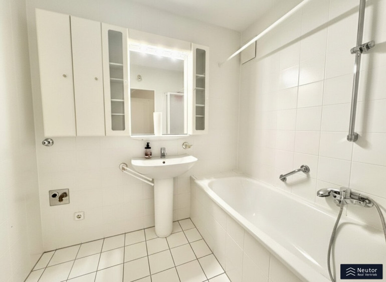 Das Badezimmer verfügt über eine Badewanne und präsentiert sich ebenfalls im ursprünglichen Zustand. In Kombination mit dem unbefristeten Mietvertrag eröffnet sich hier langfristig die Möglichkeit, das Zuhause Schritt für Schritt nach eigenen Wünschen zu gestalten. Das WC ist separat angelegt, was insbesondere im Familienalltag zusätzlichen Komfort bietet.