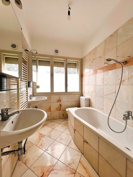 - Badezimmer mit Wanne, Doppelwaschbecken & WC