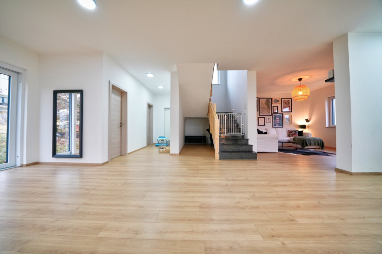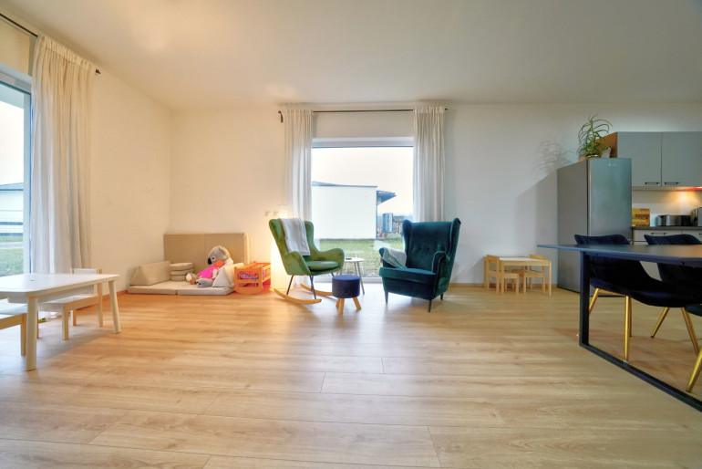 Das Herzstück des Hauses bildet der offen gestaltete Wohn- und Essbereich. Hier genießen Sie gemeinsame Stunden mit Familie und Freunden. Die großzügigen Fensterflächen sorgen für viel Tageslicht und schaffen eine angenehme, einladende Wohnatmosphäre.
