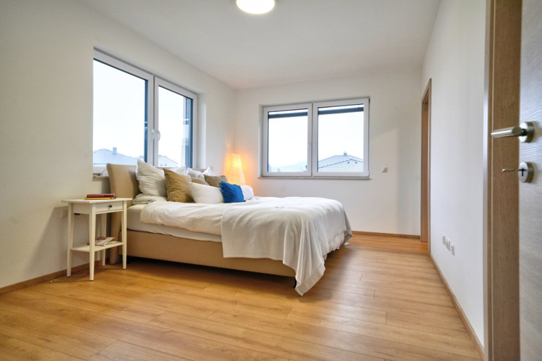 Drei komfortable Schlafzimmer bieten ausreichend Platz für die ganze Familie. Besonders hervorzuheben ist der private Elternbereich mit eigenem Bad und begehbarem Kleiderschrank – Ihr persönlicher Rückzugsort.