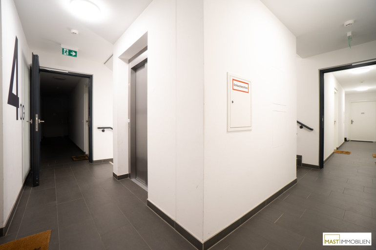Fliesen, Parkett, Fußbodenheizung, Wohnküche / offene Küche, Personenaufzug, Südbalkon, Badewanne, Garage