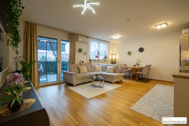 Zwei Außenflächen erweitern den Wohnraum ins Freie und laden zum Entspannen ein. An heißen Tagen sorgt die Klimaanlage für angenehme Temperaturen. Abgerundet wird dieses attraktive Angebot durch geringe Betriebskosten, die diese Wohnung besonders wirtschaftlich machen.