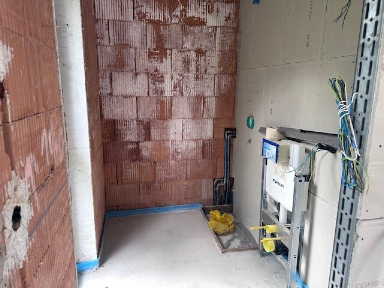 • Fußbodenheizung verlegt, Estrich vorhanden