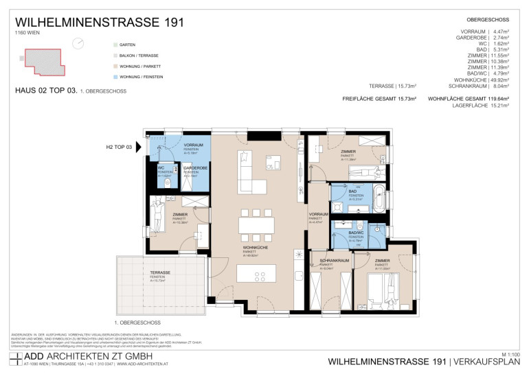 • Gute Anbindung an das öffentliche Verkehrsnetz: Direkt vor der Tür befindet sich die Bushaltestelle 46A und 46B. In 10 Fußminuten befinden sich die Straßembahnen 2, 10, 44 und 46. • Infrastruktur: Einkaufsmöglichkeiten des täglichen Bedarfs sowie infrastrukturelle Einrichtungen (Ärzte, Kindergärten, Schulen, etc.) in wenigen Gehminuten erreichbar. • Die Umgebung: Steinhofgründe, Ottakringer Bad, Diverse Heurigen, Schloss Wilheminenberg