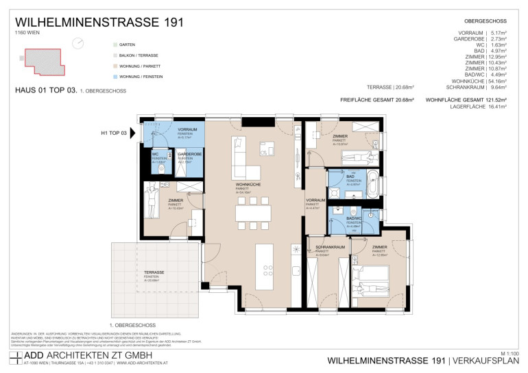 • Gute Anbindung an das öffentliche Verkehrsnetz: Direkt vor der Tür befindet sich die Bushaltestelle 46A und 46B. In 10 Fußminuten befinden sich die Straßembahnen 2, 10, 44 und 46. • Infrastruktur: Einkaufsmöglichkeiten des täglichen Bedarfs sowie infrastrukturelle Einrichtungen (Ärzte, Kindergärten, Schulen, etc.) in wenigen Gehminuten erreichbar. • Die Umgebung: Steinhofgründe, Ottakringer Bad, Diverse Heurigen, Schloss Wilheminenberg