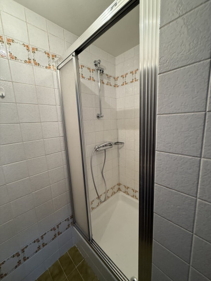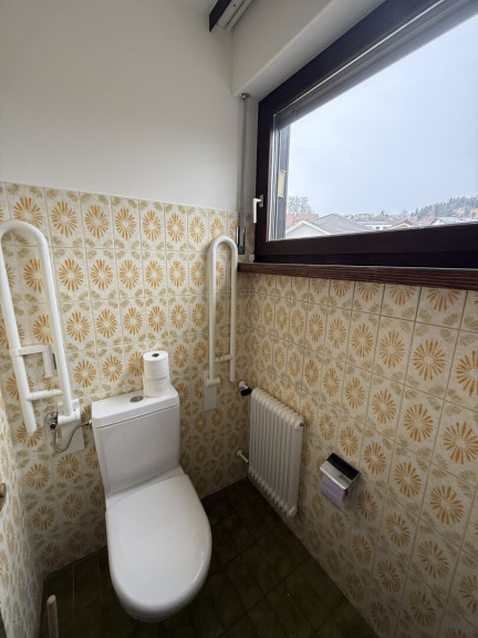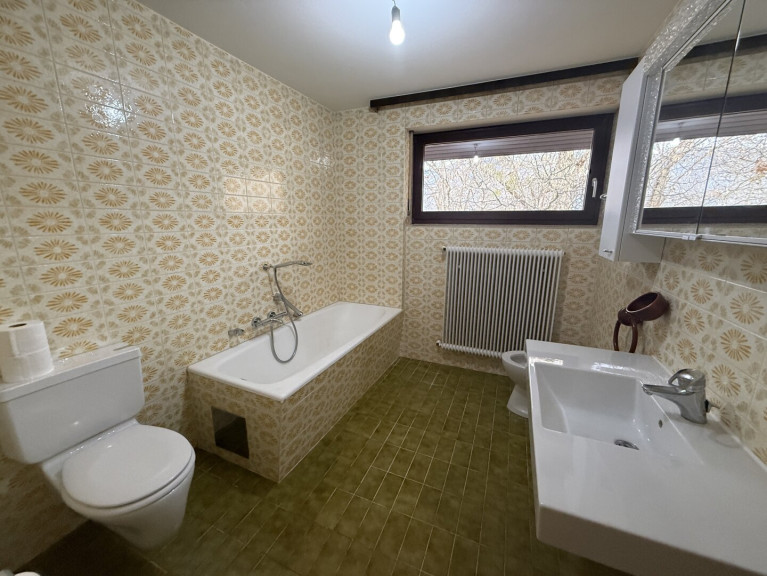 - Badezimmer mit Badewanne, Dusche, WC & Fenster