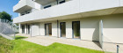 Die Wohnungen sind umgeben von Grünflächen und Weingärten.