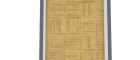 Im Wohnbereich der dank einer breiten Fentsterfront mit natürlichem Licht versorgt wird, wurde ein Stäbchenparkett verlegt.