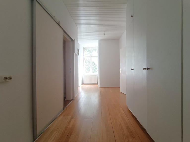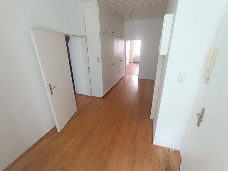 Bereits beim Betreten der Wohnung überzeugt der langläufige und großzügige Vorraum. Ein entspannter Grünblick in den Innenhof sorgt für einen angenehmen Ausblick und helle Räume. Auf einer Fläche von rund 17,55 m² erwartet Sie hier auch ausreichend Platz für einen Schrankverbau. Ebenso im Vorraum befindet sich die separate Toilette mit Handwaschbecken. Zusätzlich erreichen Sie von hier aus ebenso die separate Küche mit einer Fläche von rund 7,25 m².