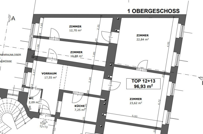 Die Wohnung sverfügt über insgesamt 4 Zimmer. Die beiden großen Zimmer bieten mit einer Fläche von jeweils rund 23,62 m² und 22,84 m² viel Raum für die persönliche Gestaltung und Einrichtung. Zimmer 3 und 4 sind Richtung Innenhof ausgerichtet und bieten eine Fläche von jeweils rund 12,70 m² und 10,88 m².
