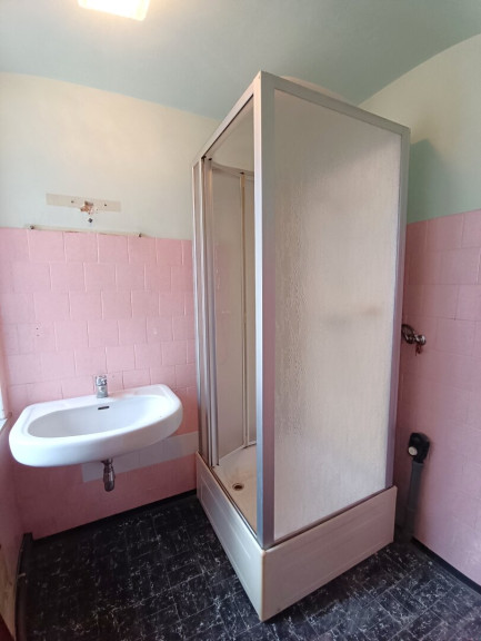 Das Badezimmer ist von der Küche aus zu betreten und verfügt über eine Fläche von rund 3 m². Die Toilette ist separat begehbar und befindet sich im Vorraum.