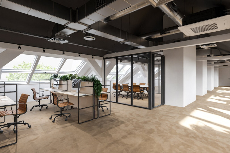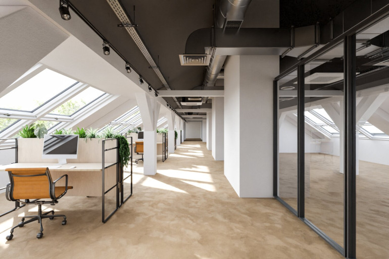 Die Sanierung umfasst vier klimatisierte Büroeinheiten ab 295m², durch Zusammenlegung sind bis zu 1.350m² erzielbar.