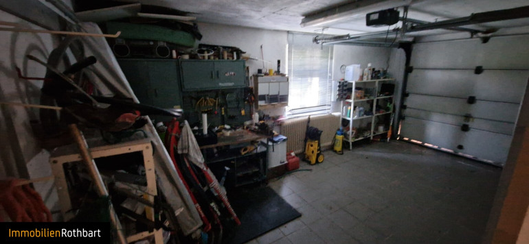 Die Garage bietet nicht nur Platz für Ihr Fahrzeug, sondern auch zusätzliche Möglichkeiten zur Aufbewahrung ebenso wie der Keller und ein Gartenhäuschen am herrlichen Grund.