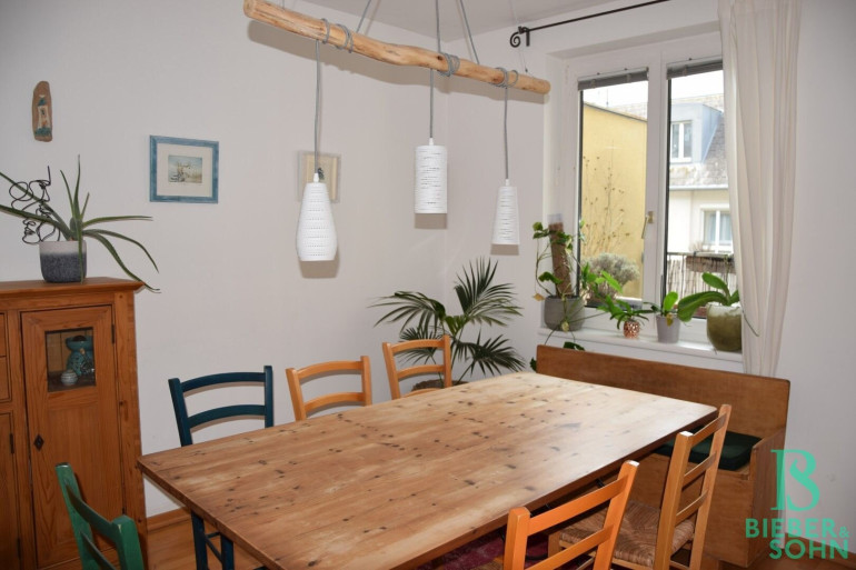 Der sonnige und lichtdurchflutete, ca. 22m² große Wohnraum mit der großflächigen Fensterfront und dem Ausgang auf die ca. 11m² große Westterrasse ladet zum Wohlfühlen ein! Über den Vorraum sind die drei weiteren Zimmer zu betreten sowie die große, komplett ausgestattete Küche, in der man die Familie mit Köstlichkeiten verwöhnen kann! Das Bad mit Wanne, Waschtisch und Waschmaschine ist zwar etwas in die Jahre gekommen jedoch gewinnt es wieder durch das Fenster, und das separate WC komplettieren diese großzügige Wohneinheit.