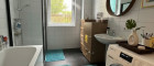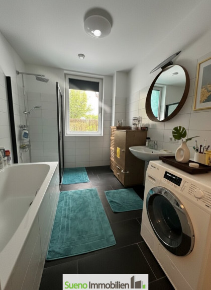 Badezimmer mit Dusche und Waschmaschinenanschluss