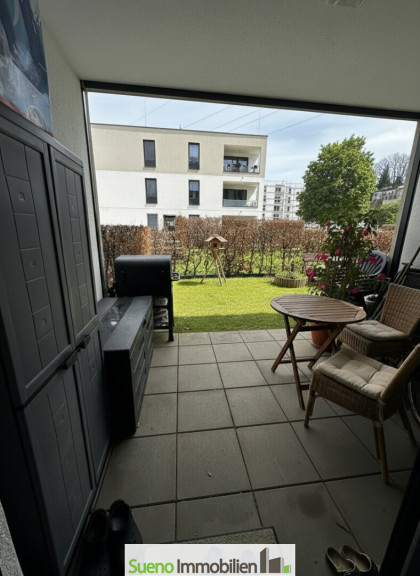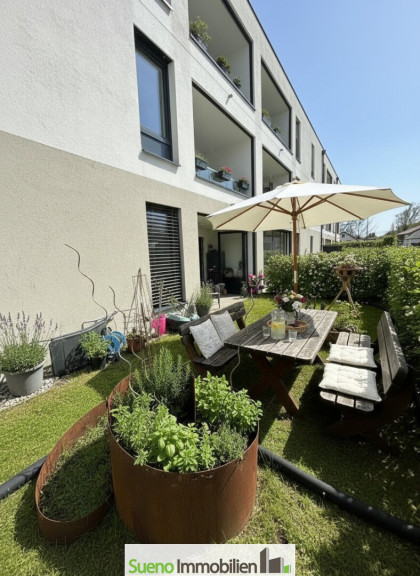 Diese moderne Garten-Eigentumswohnung im Erdgeschoss liegt in einer hochwertigen Wohnanlage in ruhiger Grünlage von Schlatt.