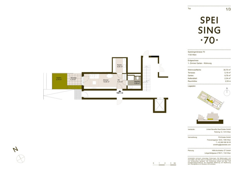 In der SPEISING:70 entsteht ein modernes Wohnprojekt mit zwei Baukörpern in reduzierter, kubistischer Architektur. Zur Straße hin öffnet sich ein Gebäudeteil mit kompakteren Wohneinheiten, deren flächenbündige Fichtenholz-Fenster dem Ensemble ein unverwechselbares Erscheinungsbild verleihen. Einzigartige Markisoletten sorgen für stilvollen Sonnenschutz und setzen gleichzeitig gestalterische Akzente. Die hofseitig ausgerichteten, größeren Wohnungen profitieren von einer ruhigen, westseitigen Lage und besonders großzügigen Außenflächen.