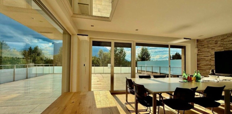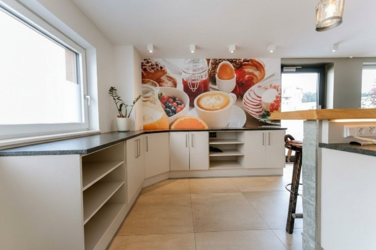 Ein besonderer Vorteil ist die strategische Sichtlage. Werbeflächen im Dachbereich auf Autobahnseite sowie eine rund 30 m² große Fläche im Zufahrtsbereich sorgen für hohe Sichtbarkeit und einen starken Werbewert. Im Erdgeschoss und Zwischengeschoss befindet sich ein repräsentativer Showroom mit etwa 85 m² und Besprechungsbereich. Zusätzlich steht eine Gastronomieeinheit mit eigenem Eingang zur Verfügung, die als Café oder Kommunikationsbereich genutzt werden kann.